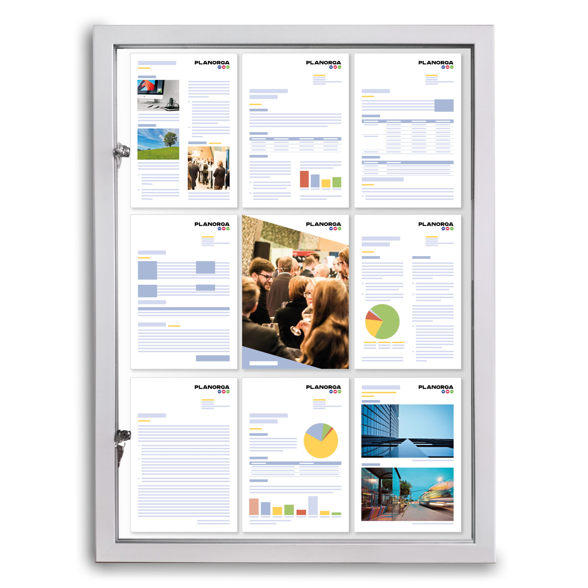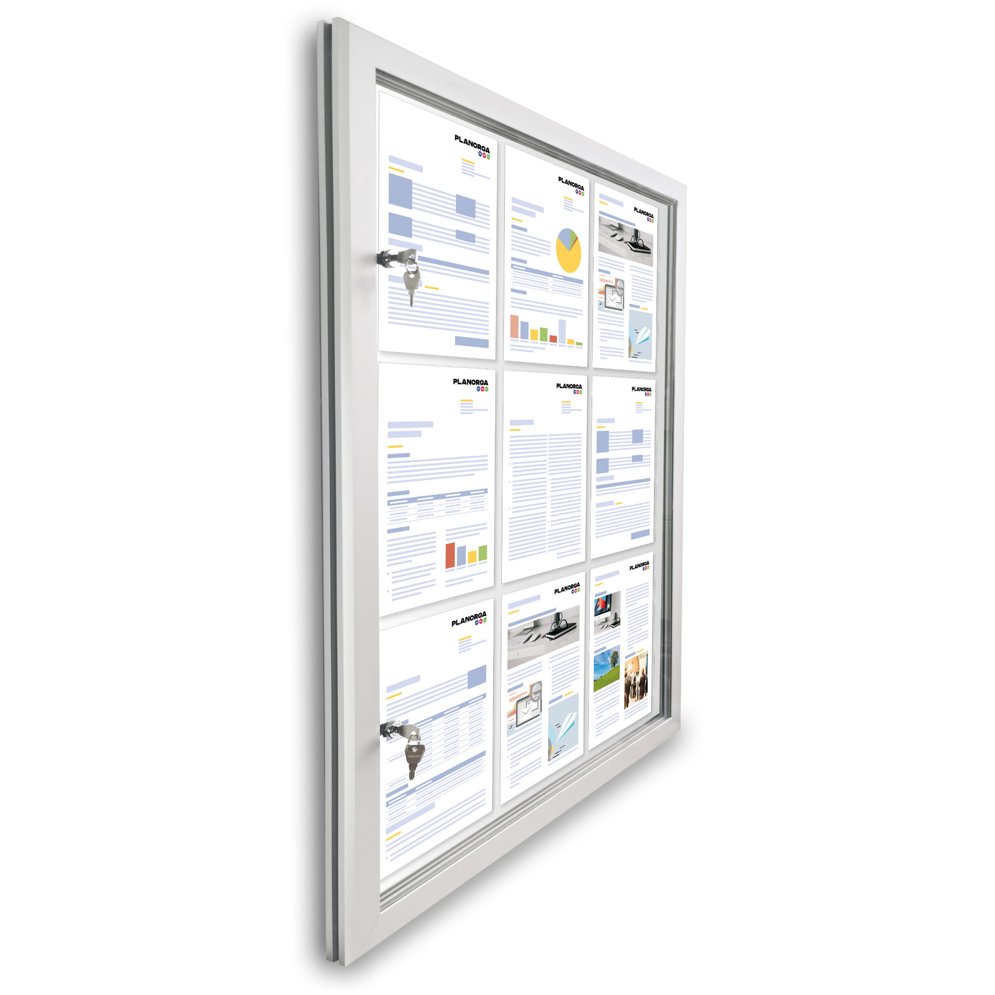 - Jednodrzwiowa wisząca gablota zewnętrzna wykonana z aluminium anodyzowanego z dbałością o każdy detal.